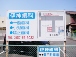 当院には、医院前に3台、近くの契約駐車場(下記矢印の場所)4台の計7台分の駐車場がございます。