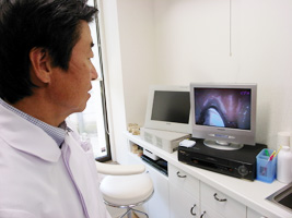 歯周病治療は毎回来院時に口腔内カメラを使って歯の裏側まで細部にわたってビデオ撮影し、歯磨きができているかチェックします。小さな歯石も見逃しません。