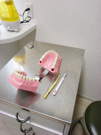 撮影したビデオを元に、どこが磨けていないか?を模型を使って検証し、磨き方を指導します。「徹底的」これが当医院の方針です。